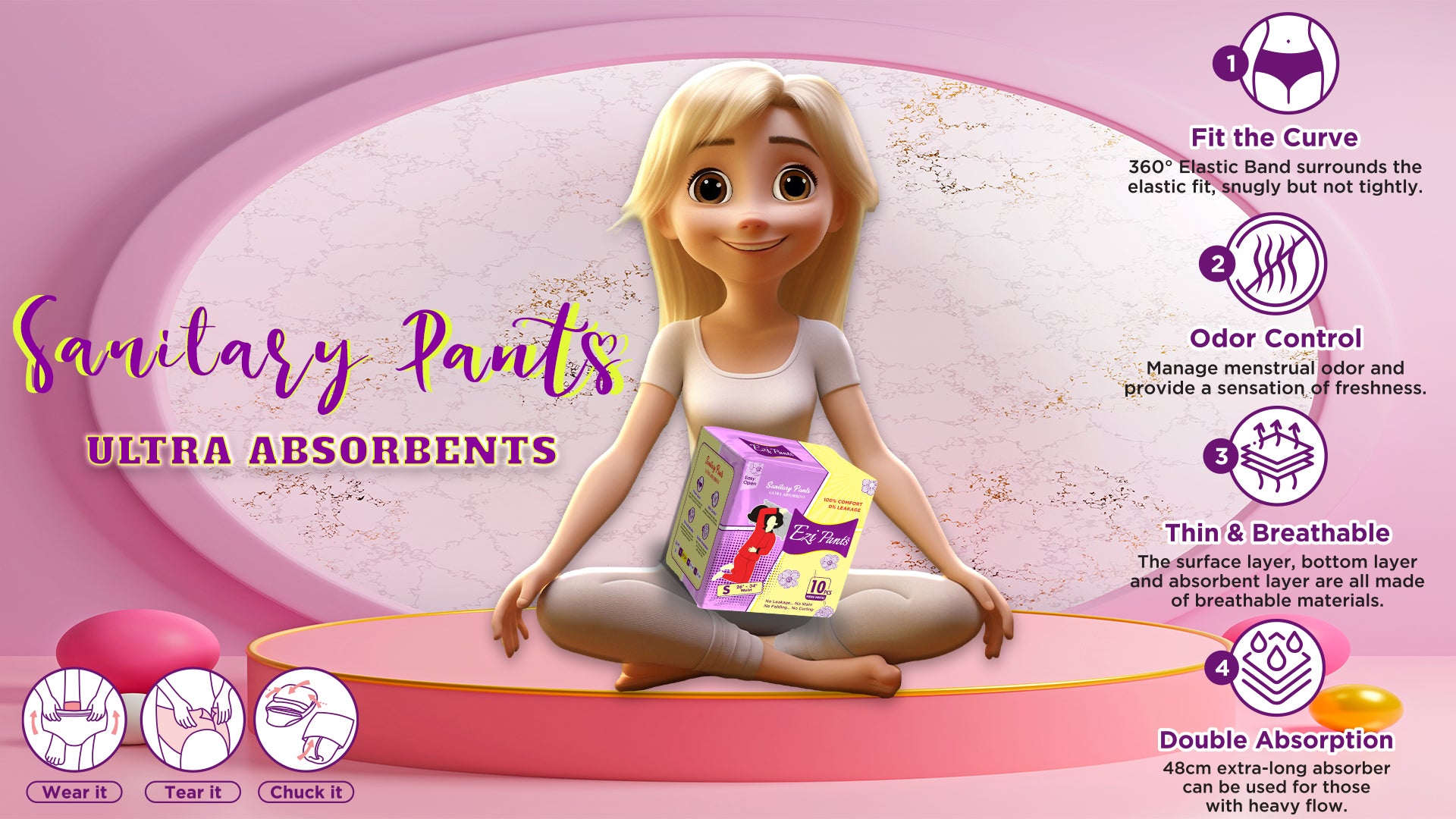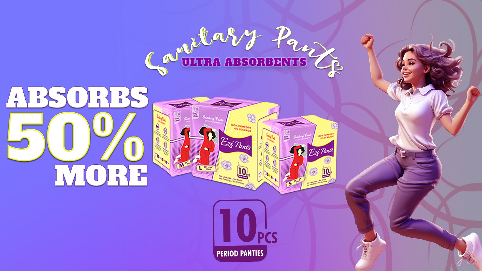 EziPants brings Pakistan its first-ever sanitary pant brand, designed to give women the freedom, confidence, and comfort they deserve. With 360° elastic fit, odor control, and up to 12-hour heavy flow protection, EziPants is your reliable partner for periods, postpartum recovery, and everyday freshness. Simply wear, tear, and dispose—no mess, no stress
